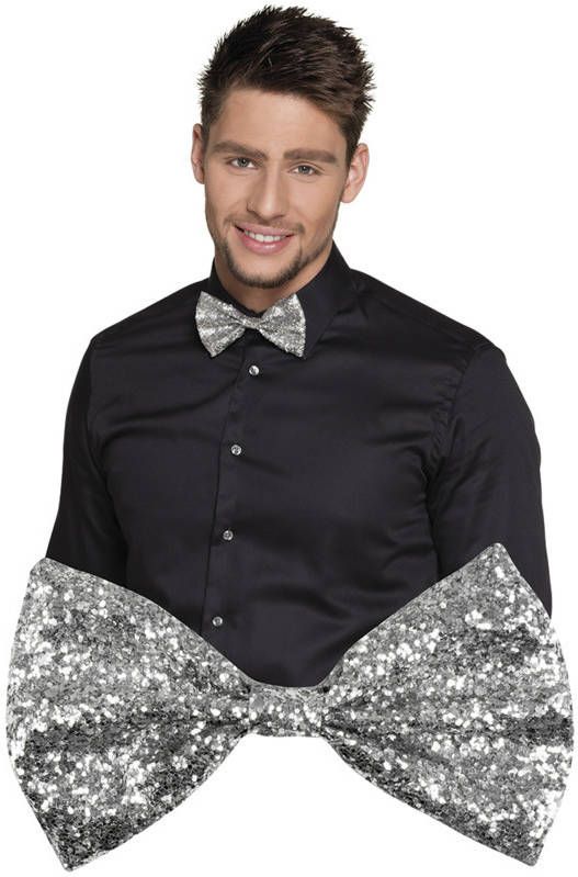 Vlinderstrik glitter zilver Feestbazaar Vóór 18:00 uur besteld, morgen in huis!.